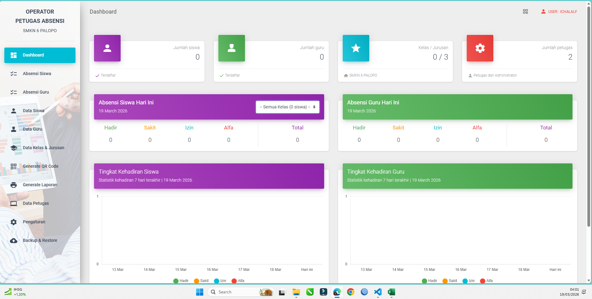 Sistem absensi siswa dan guru/pegawai masuk dan pulang dengan metode atau menggunakan sistem scan barcode atau bisa FRID.